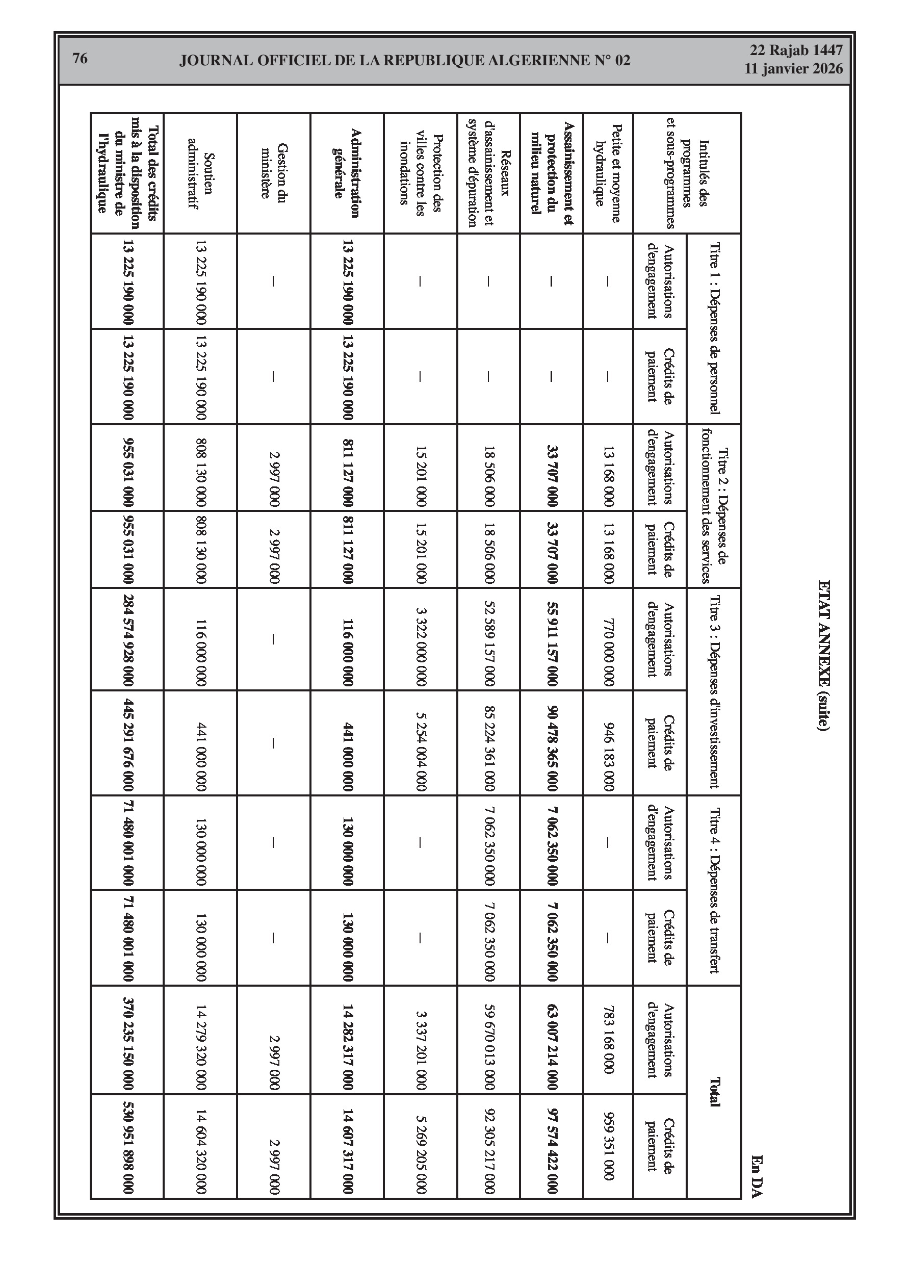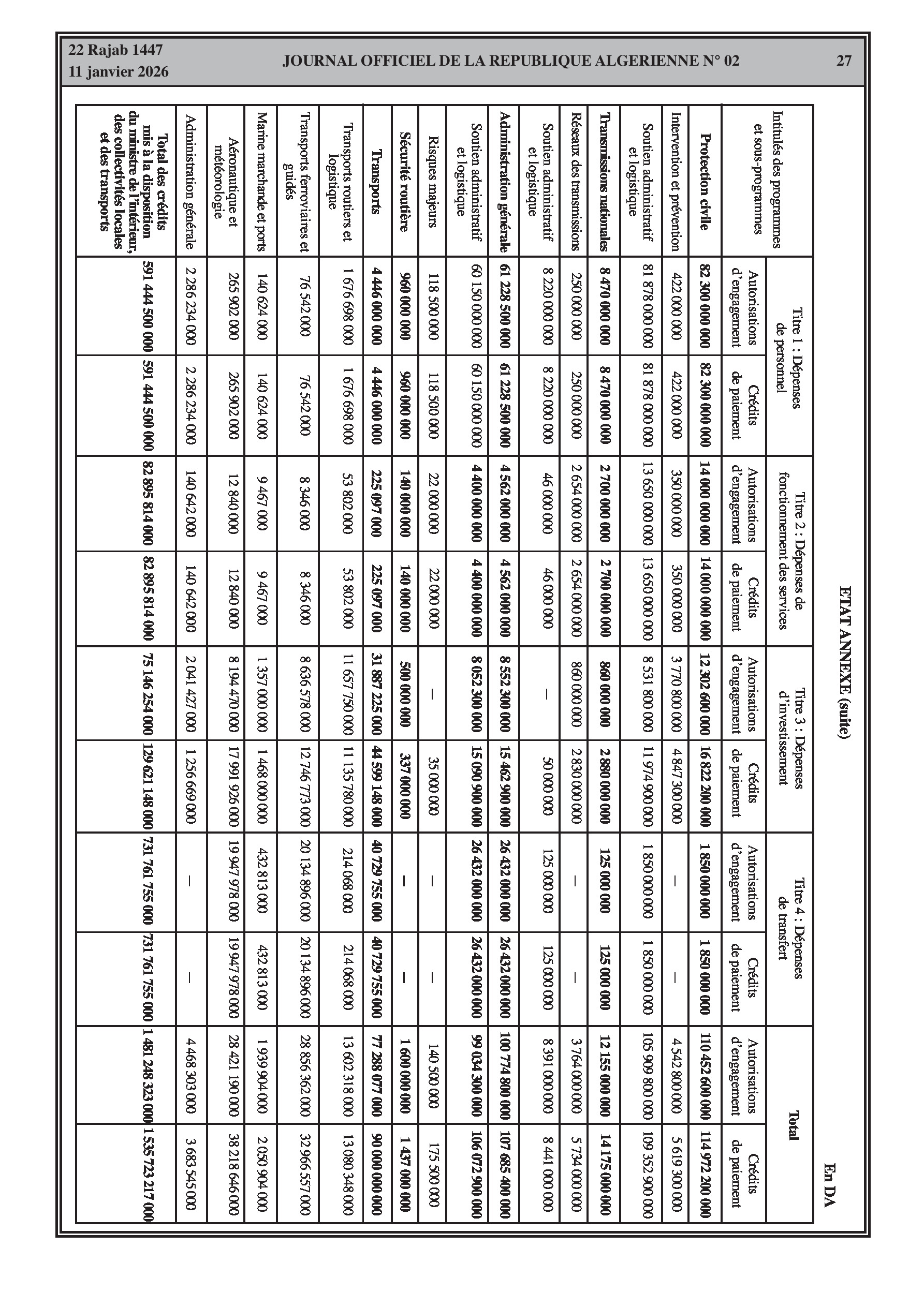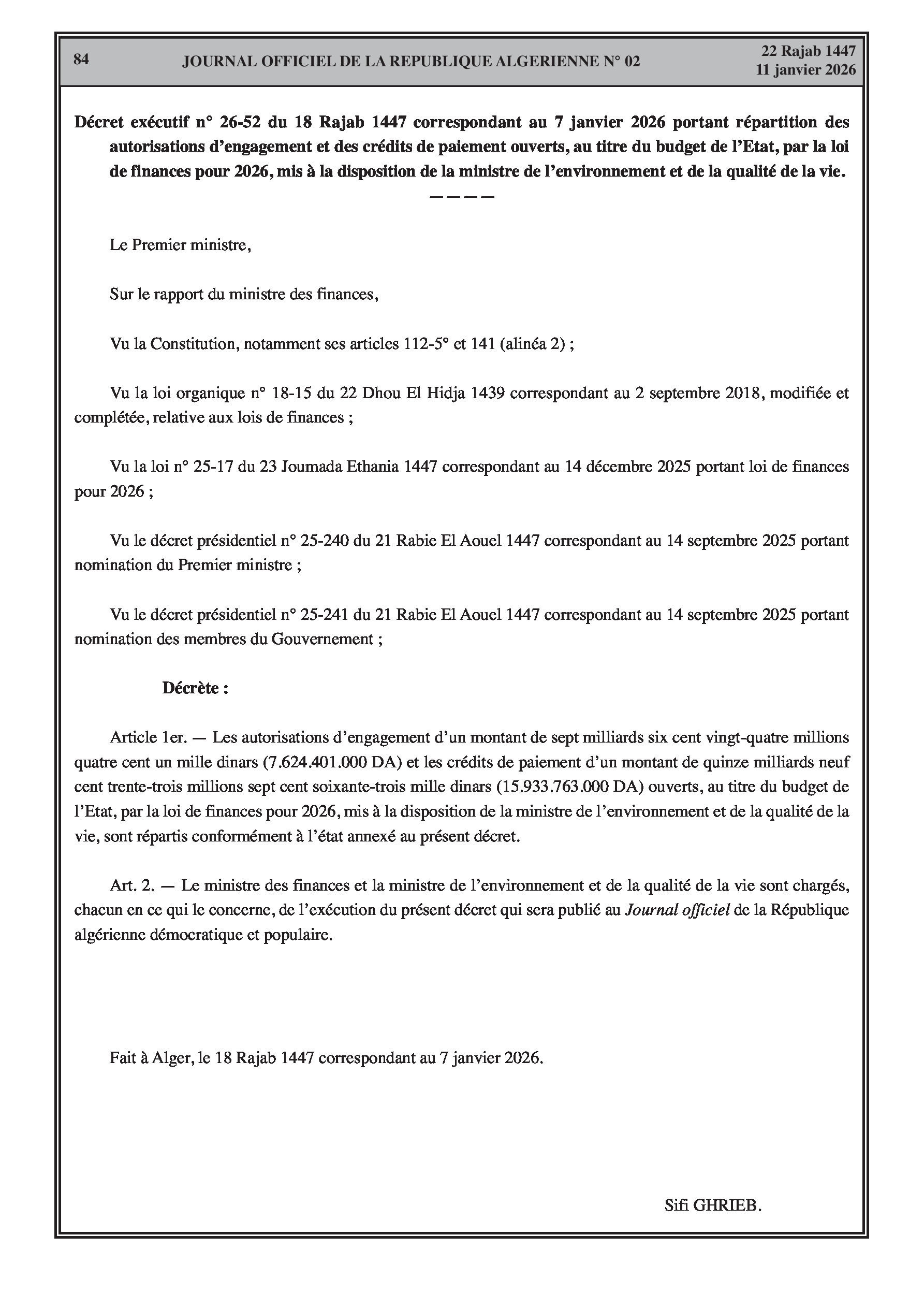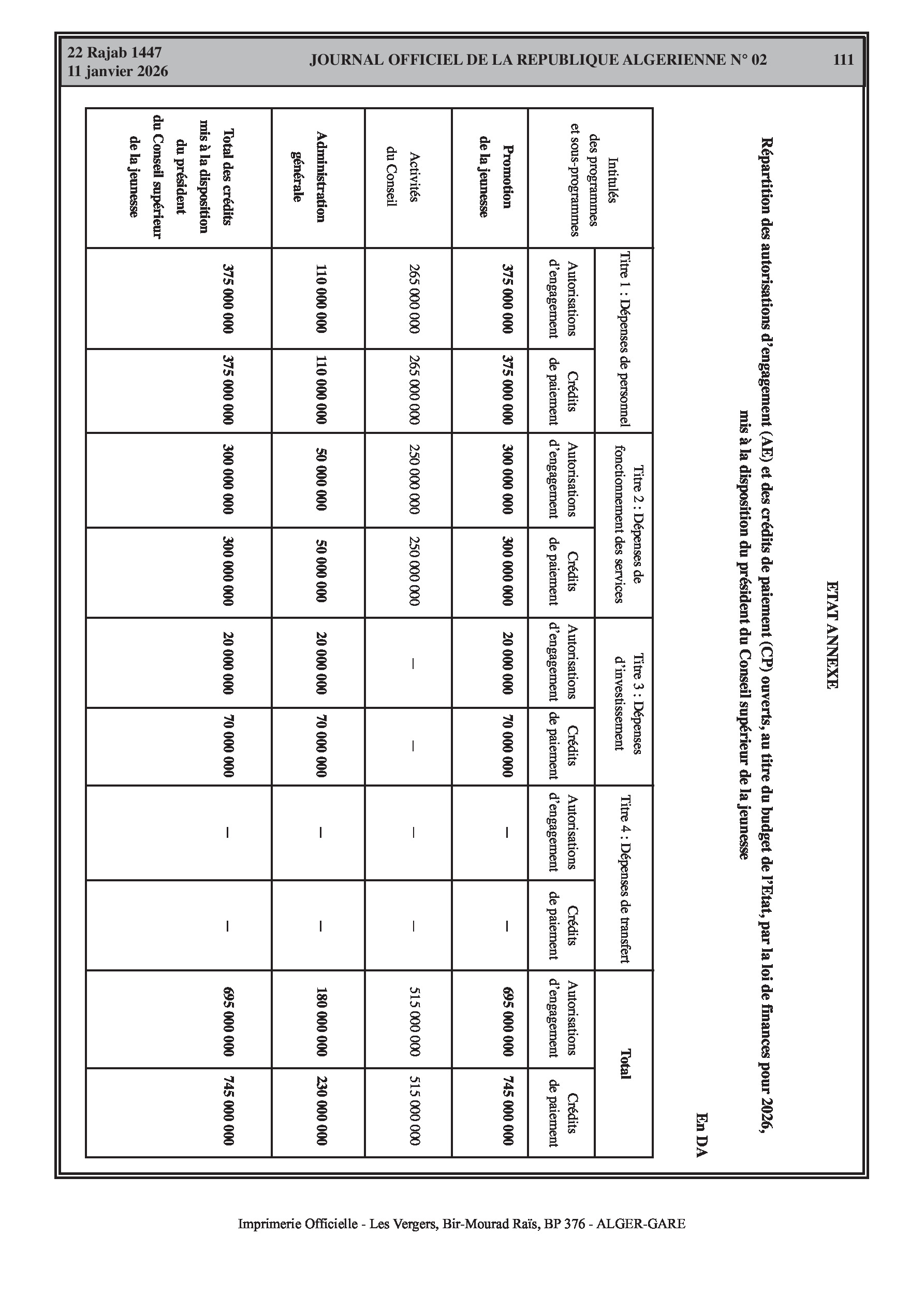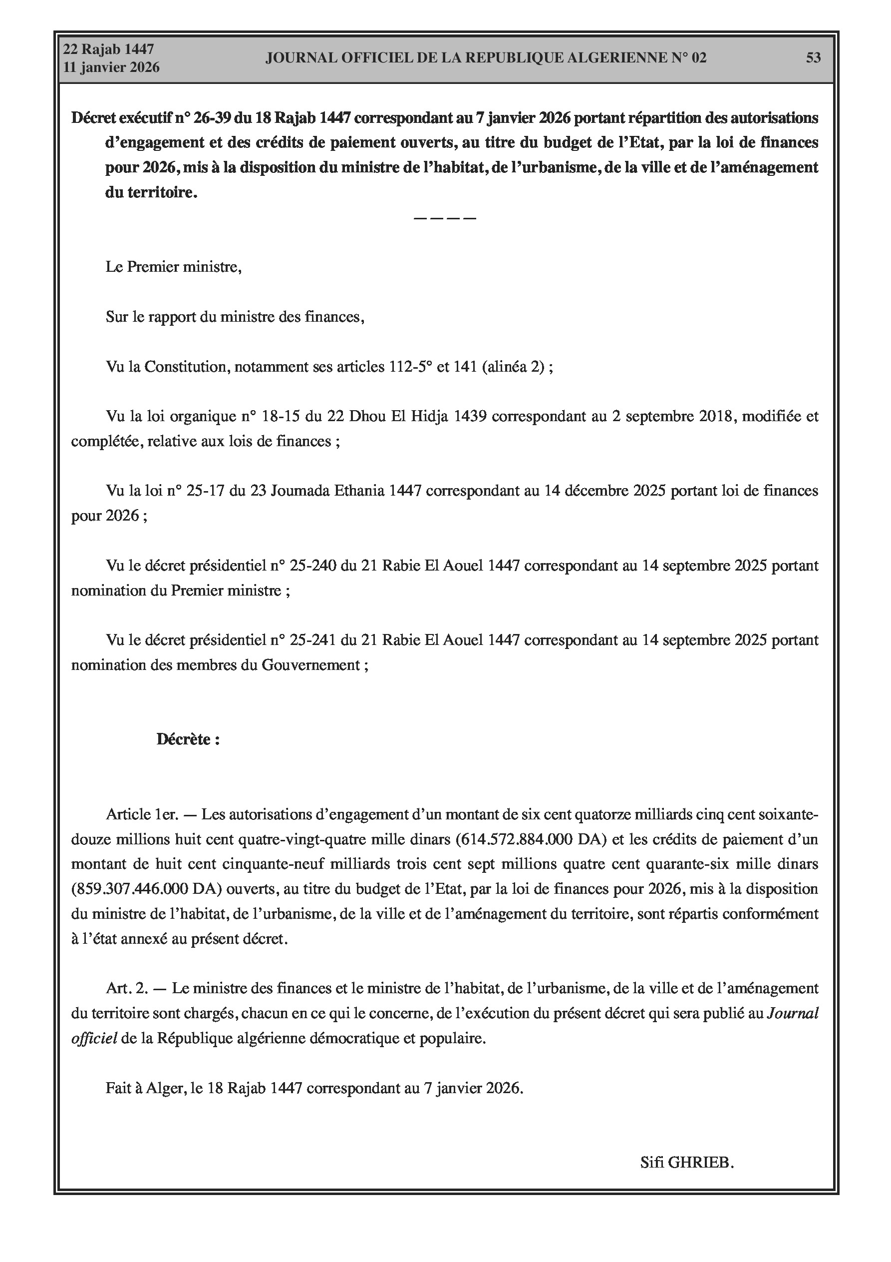 Budgets alloués aux Moudjahidine, à l'Industrie, l'Agriculture, l'Énergie et au Commerce.