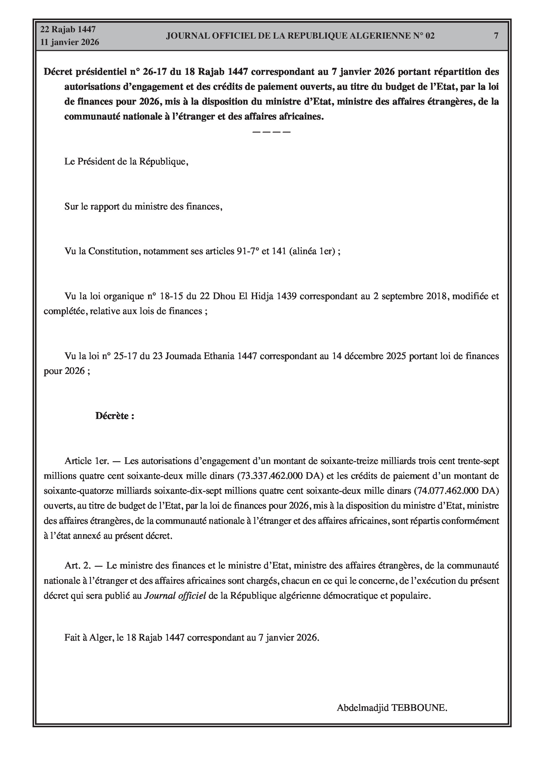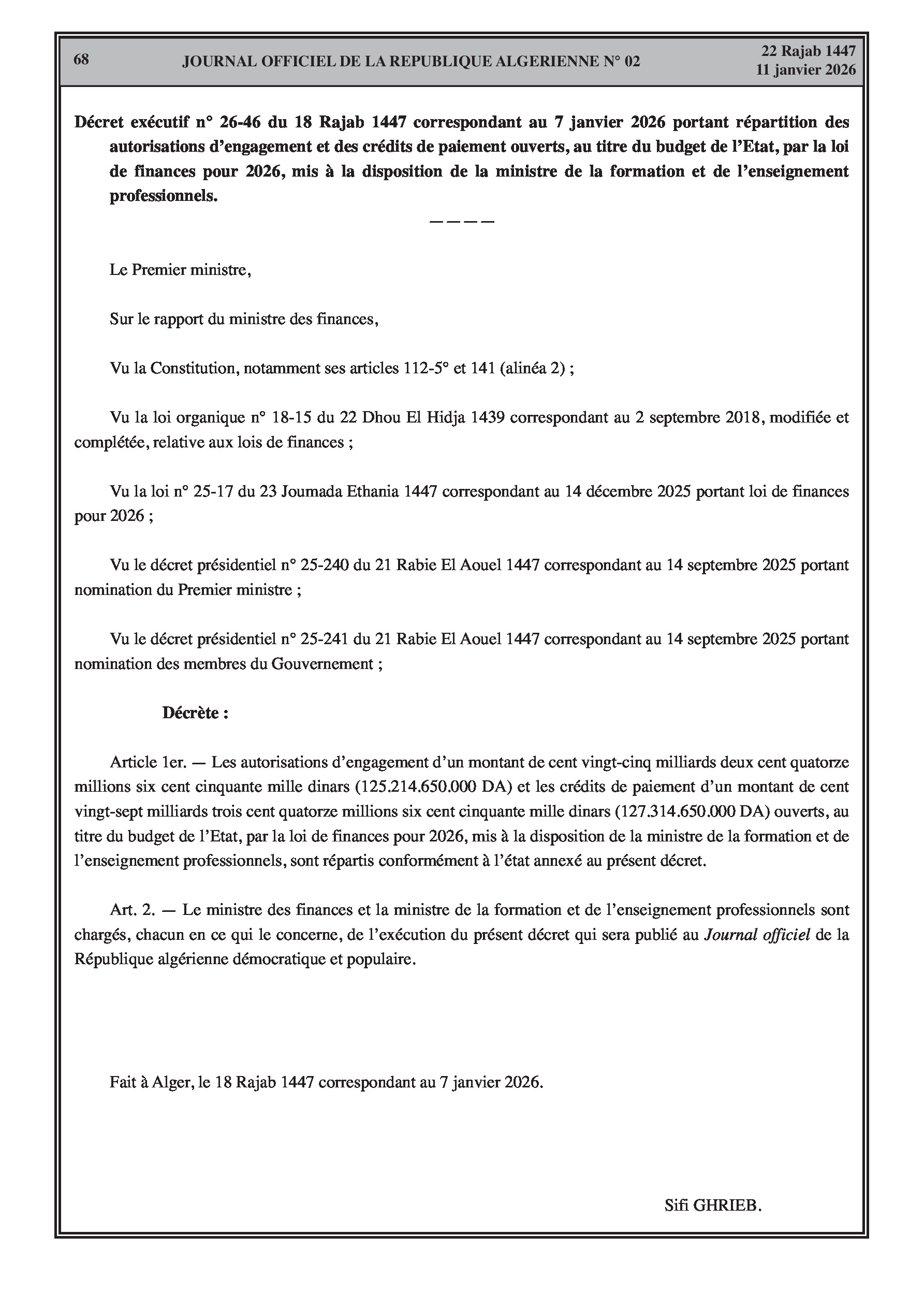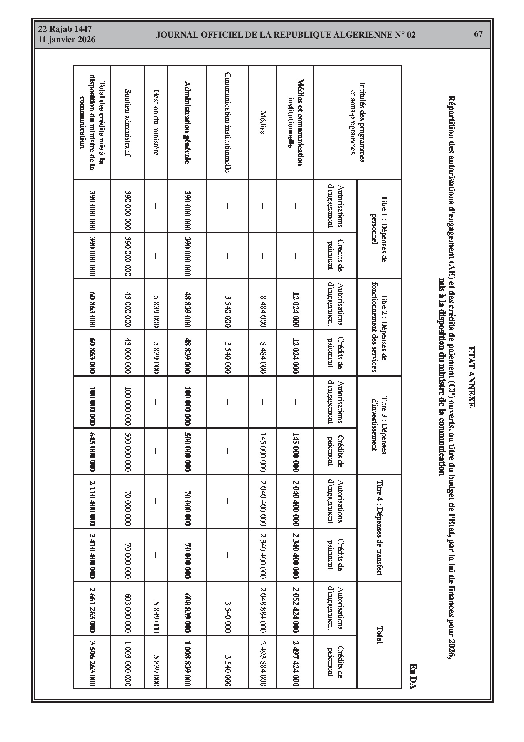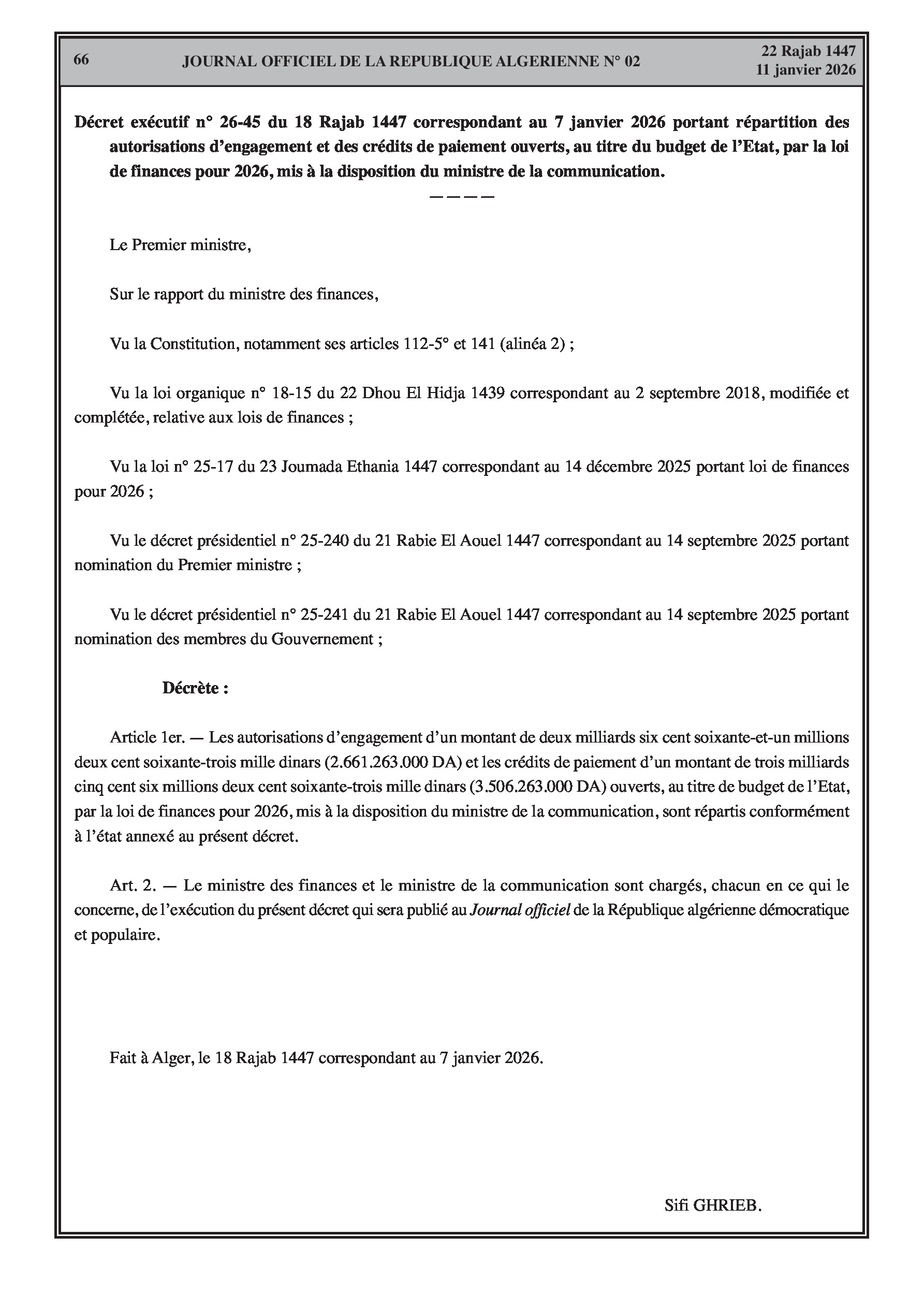 Budgets alloués aux Moudjahidine, à l'Industrie, l'Agriculture, l'Énergie et au Commerce.