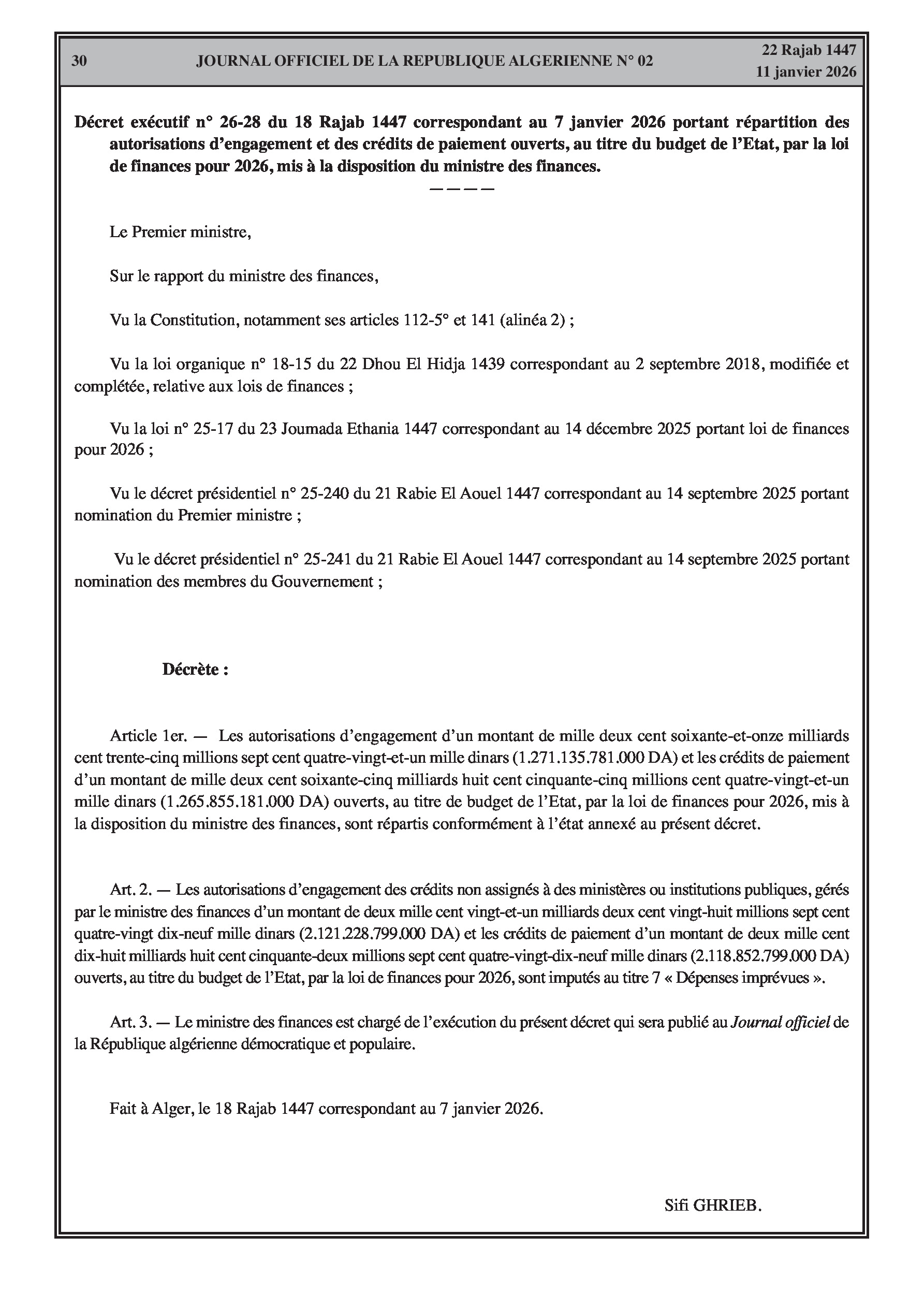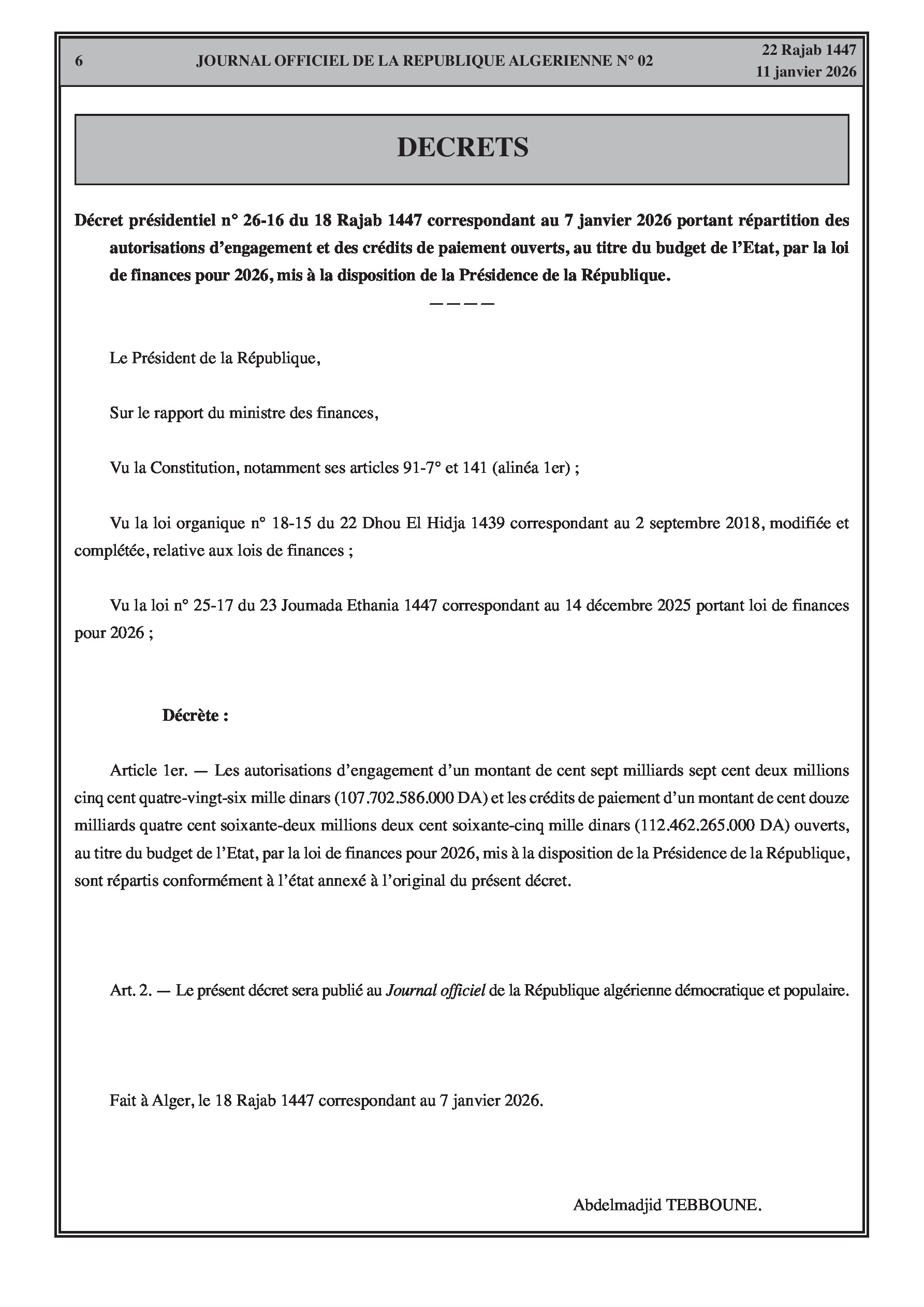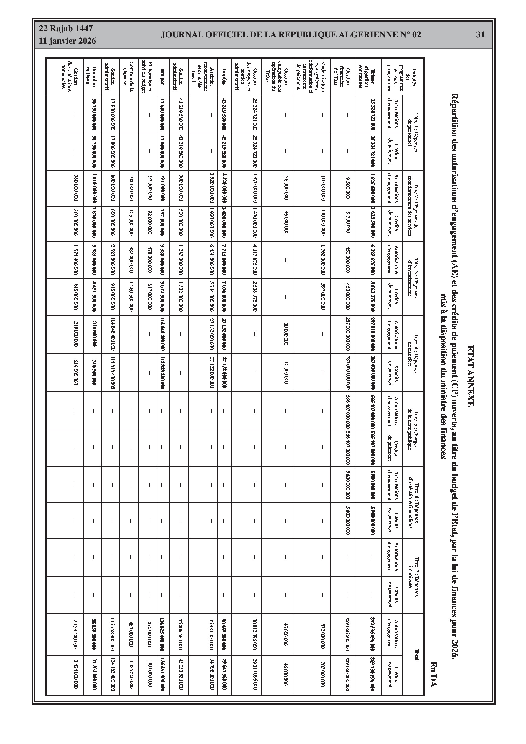 Répartition du Budget de l'État pour l'année 2026