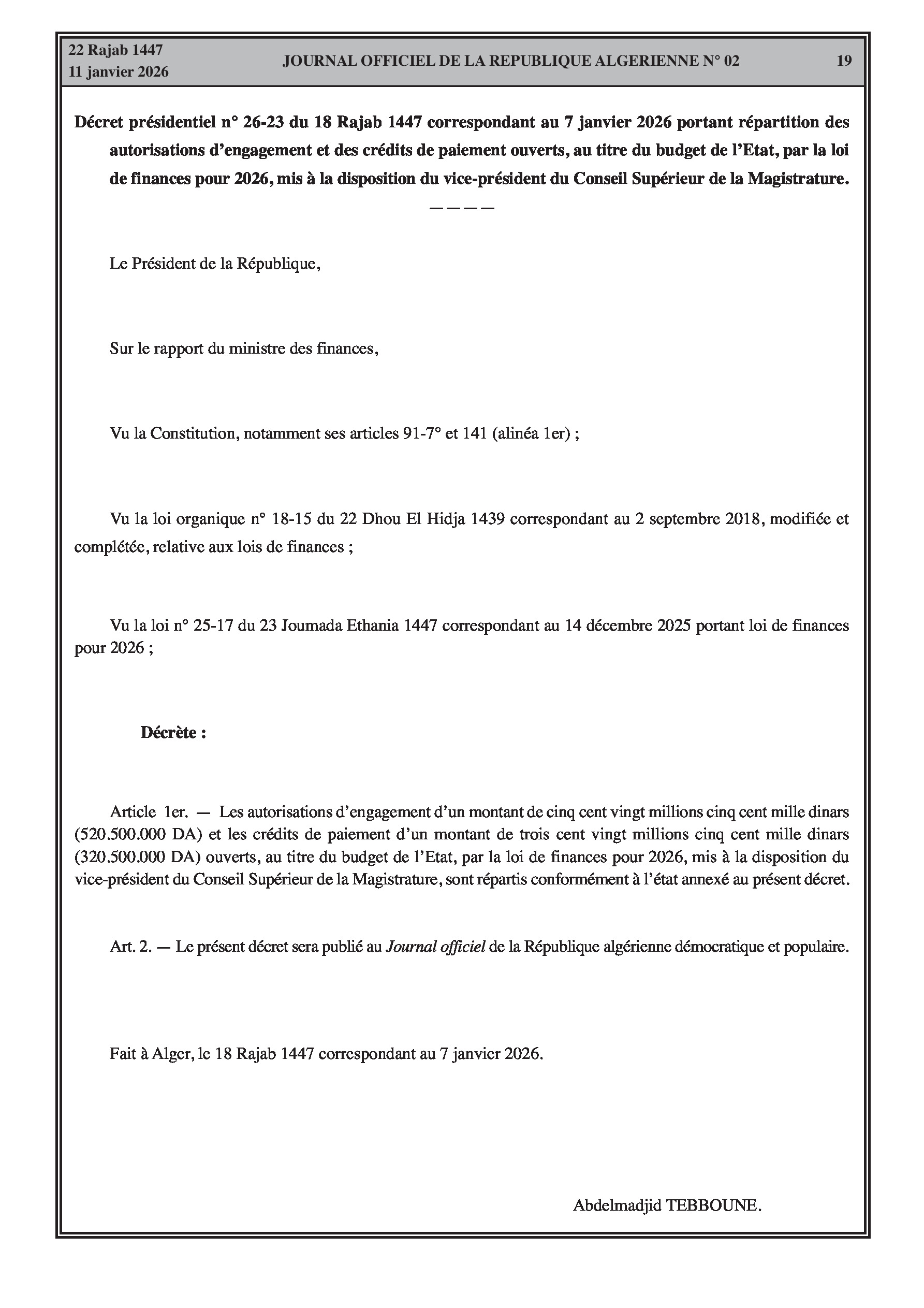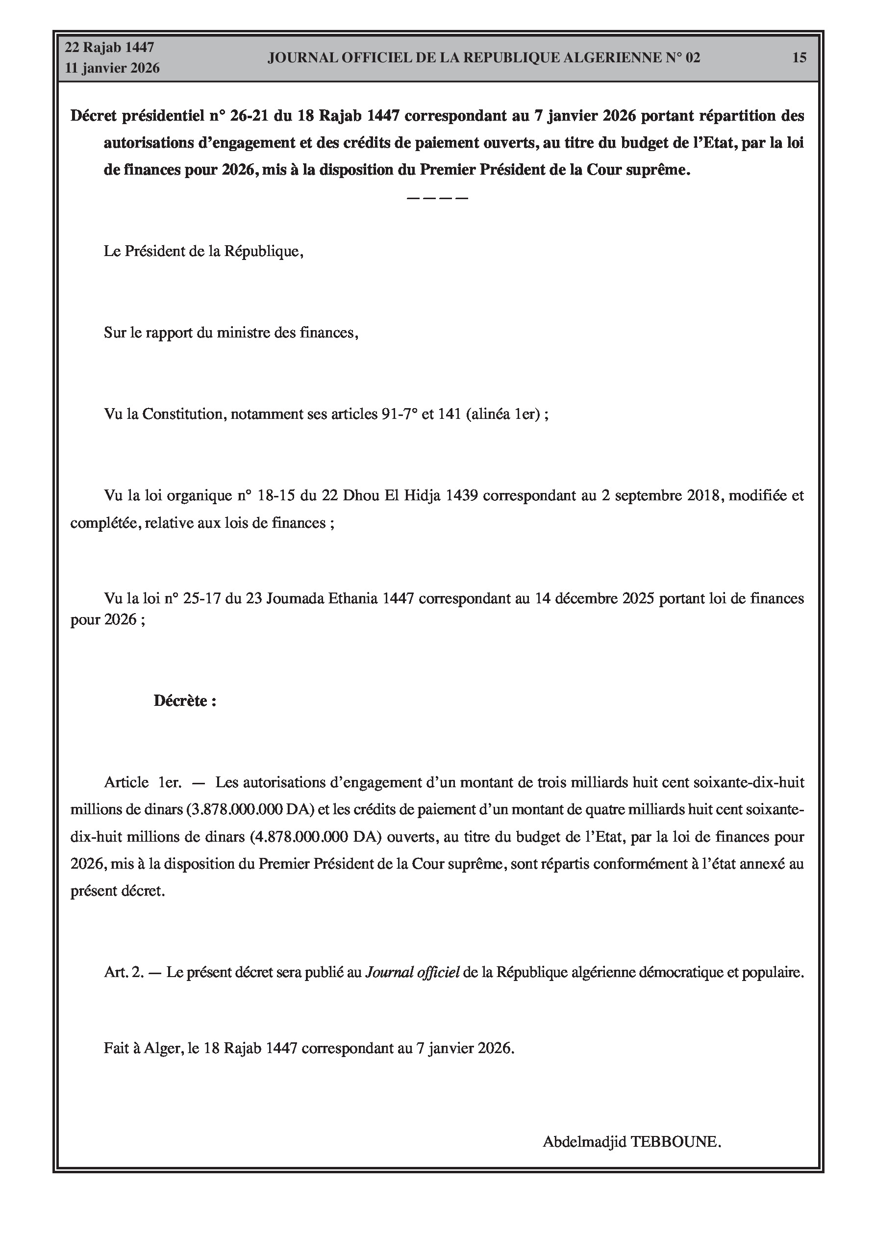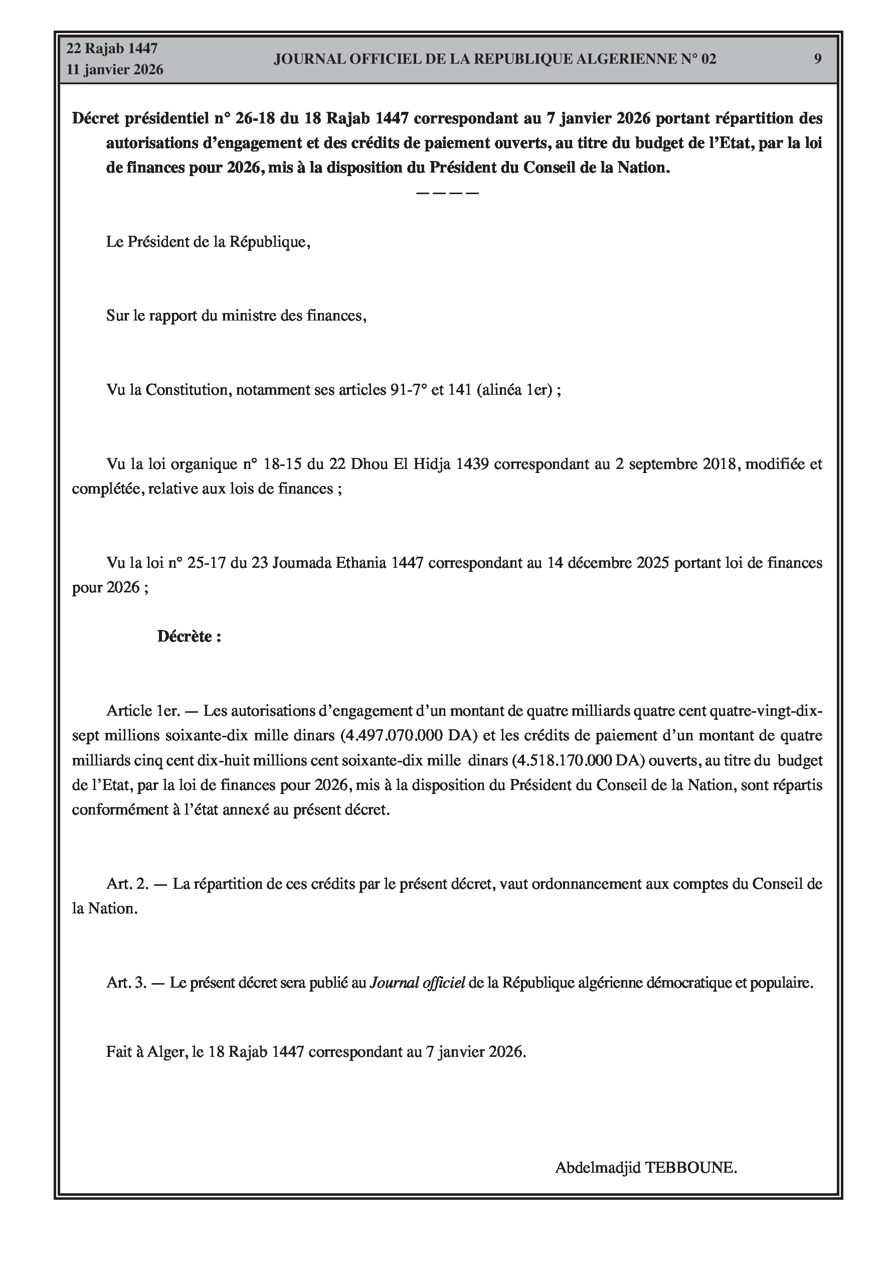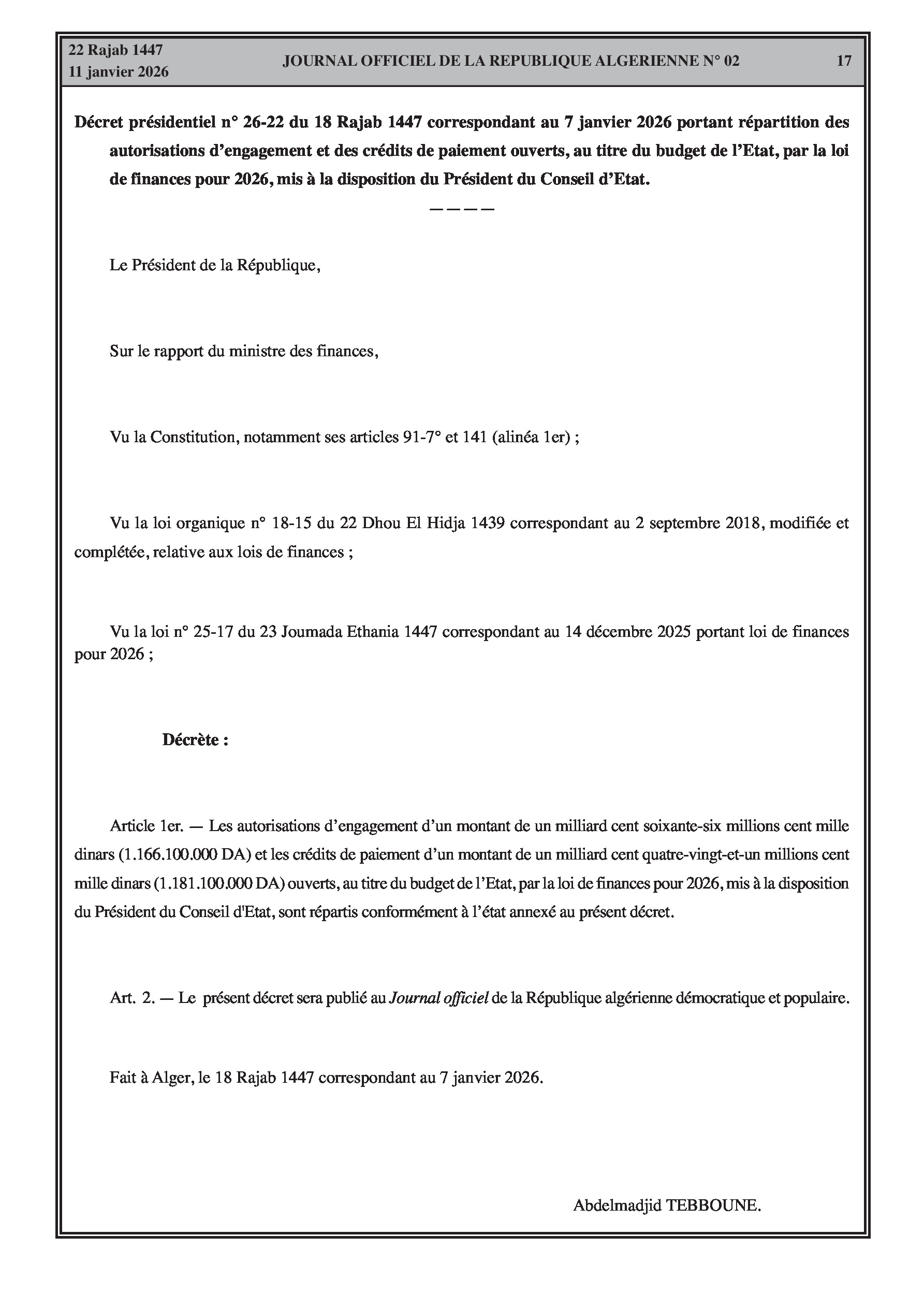 Répartition du Budget de l'État pour l'année 2026