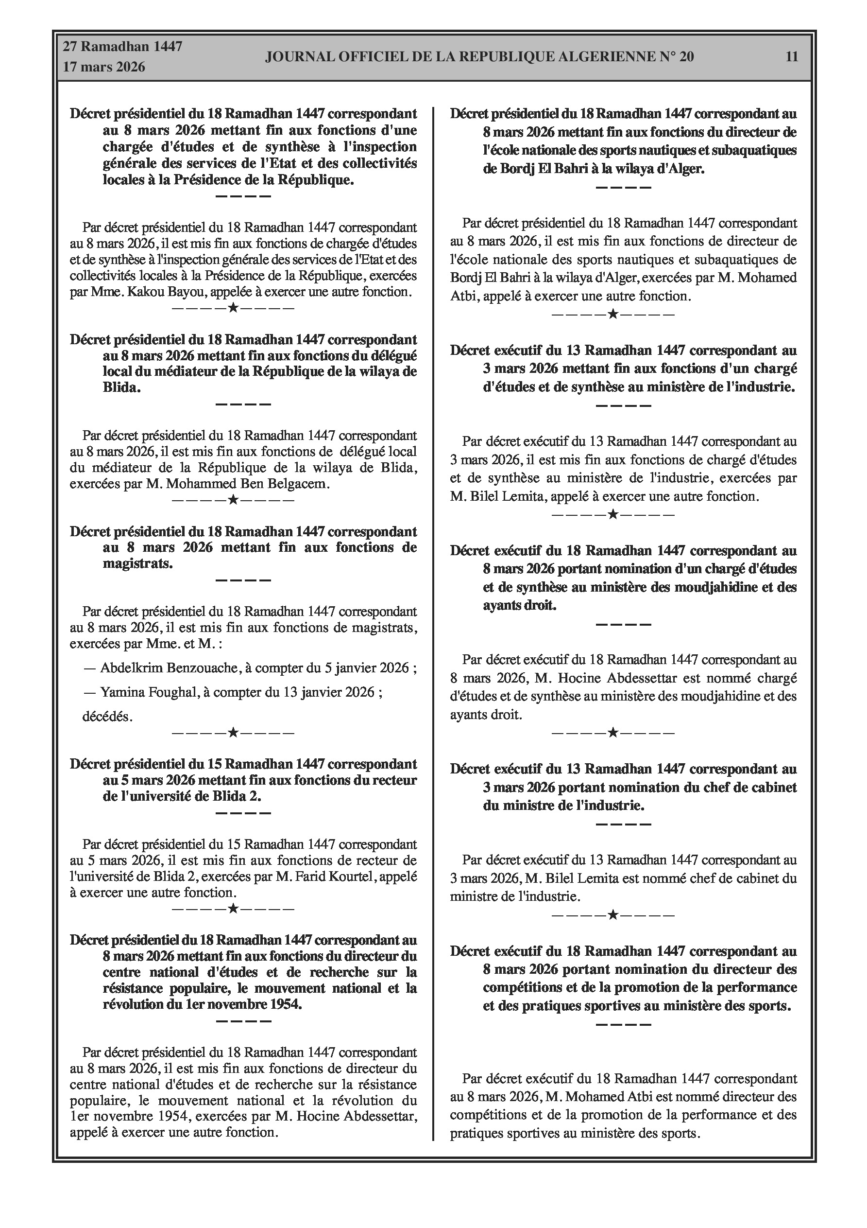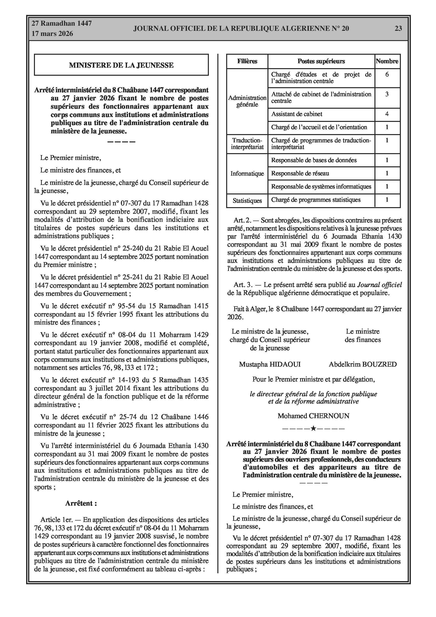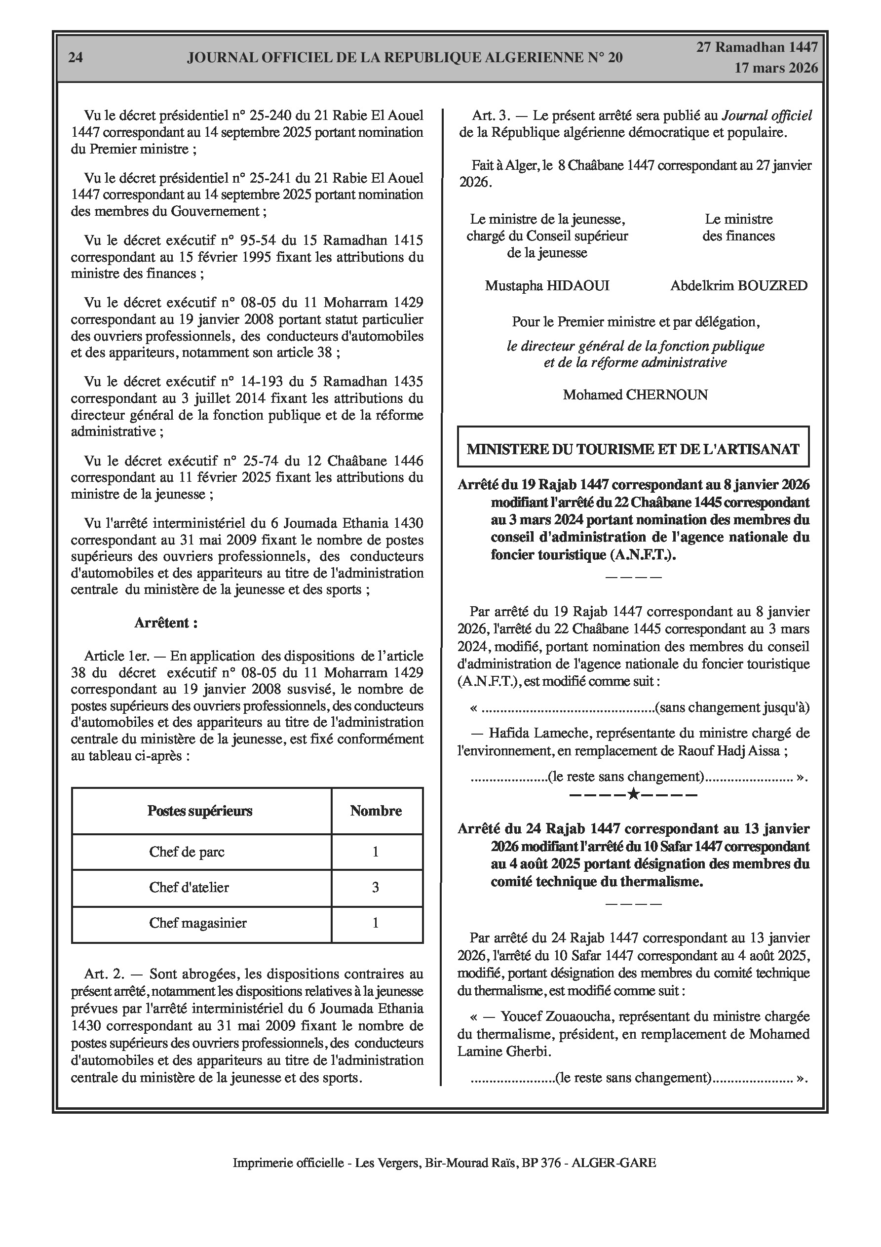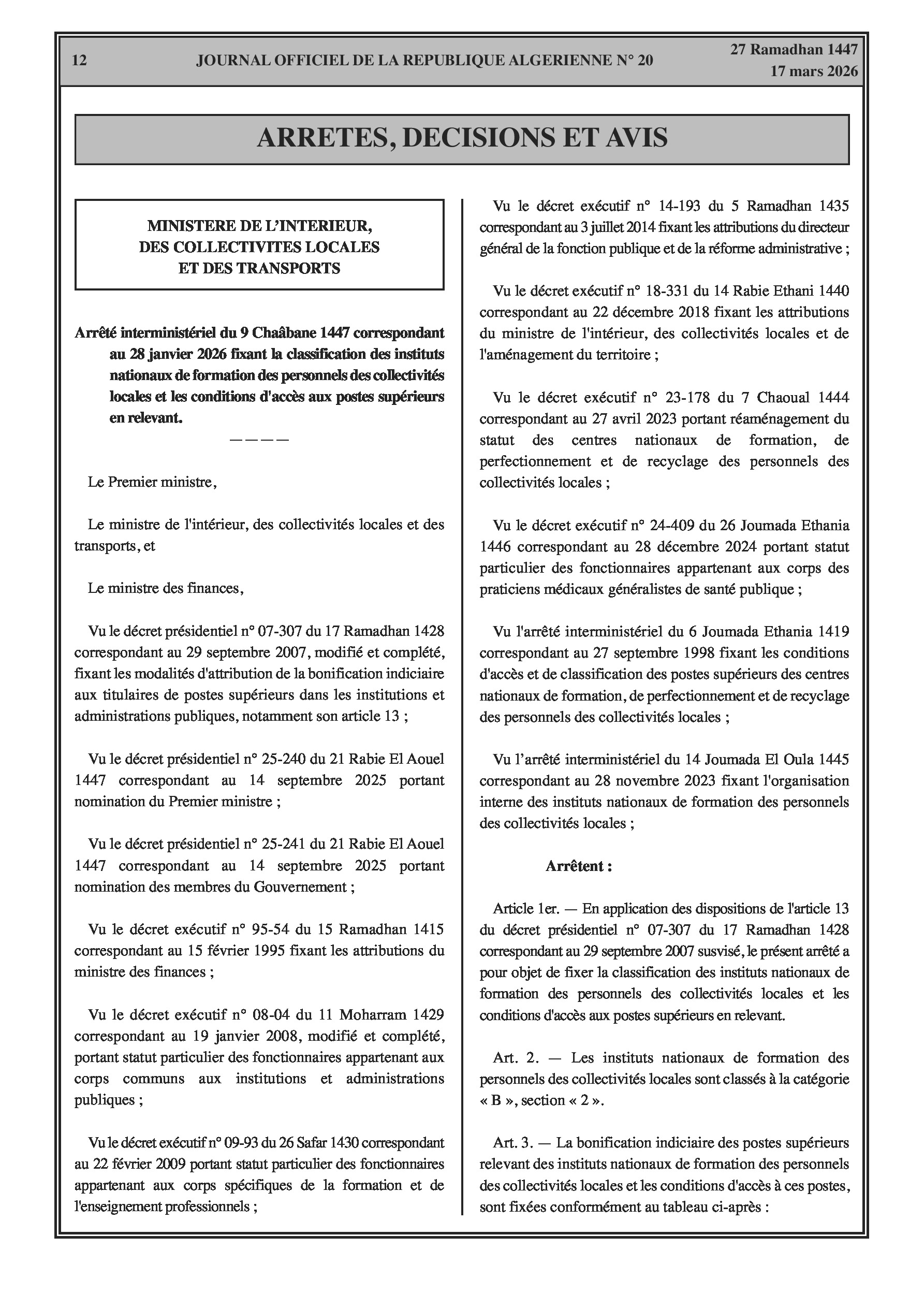 Décrets et arrêtés fixant la classification des instituts de formation, des postes de travail et les nominations aux postes de l'État.
