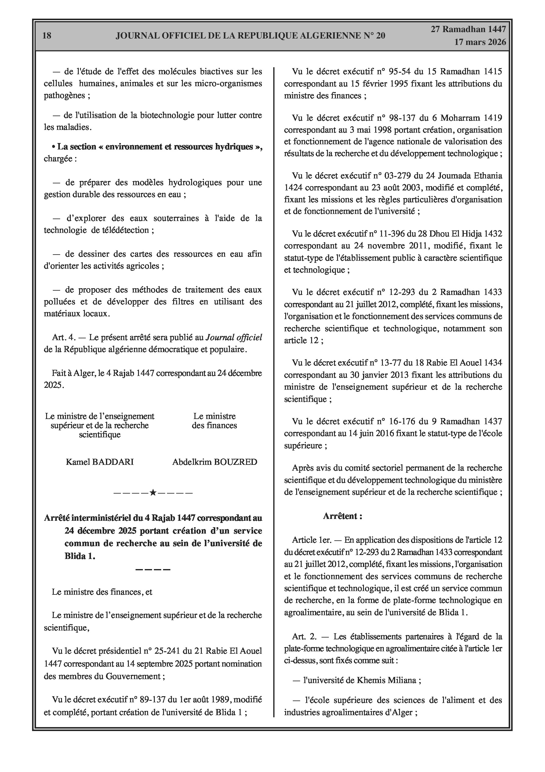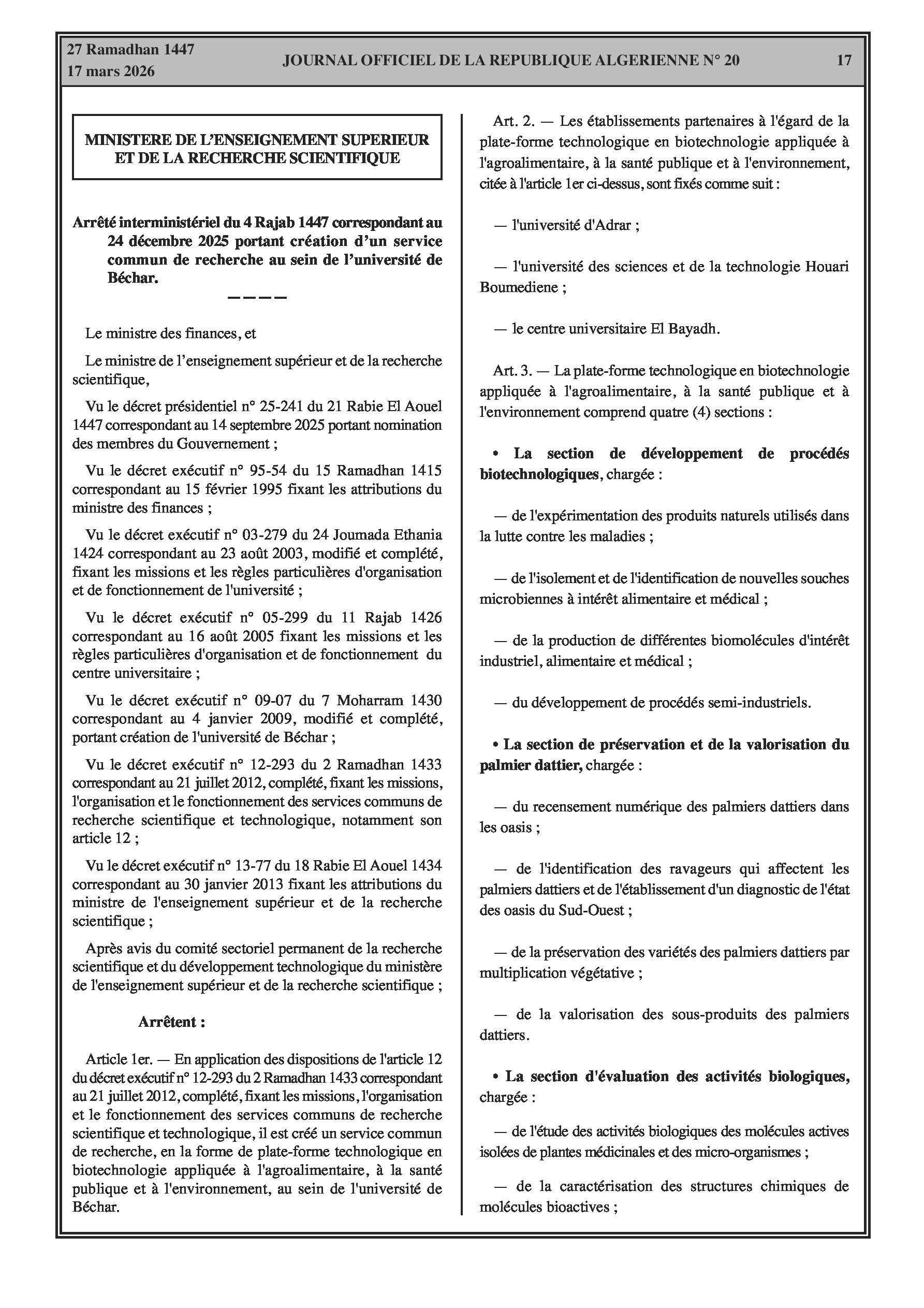 Mise en place de services communs de recherche et de stations expérimentales dans plusieurs universités et centres de recherche.