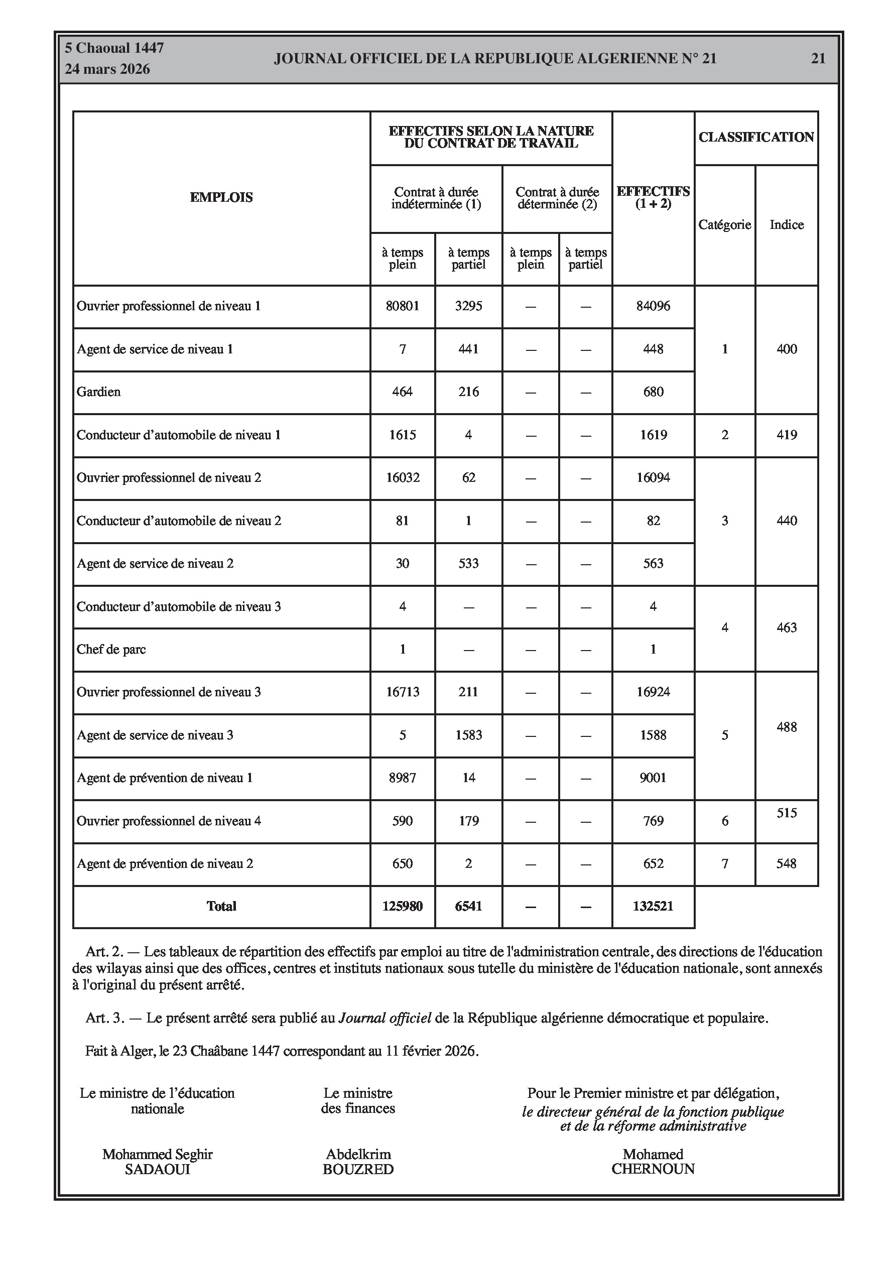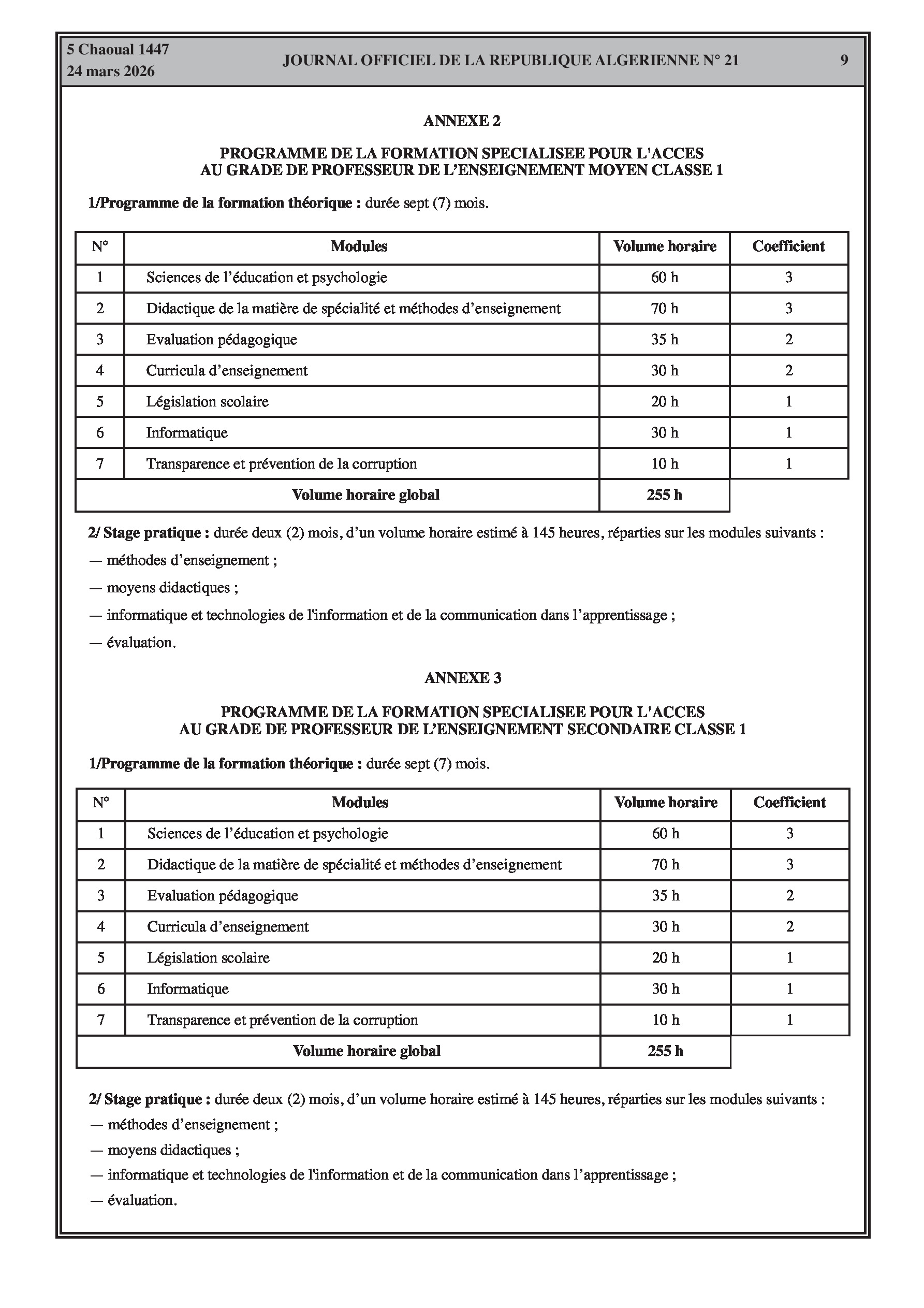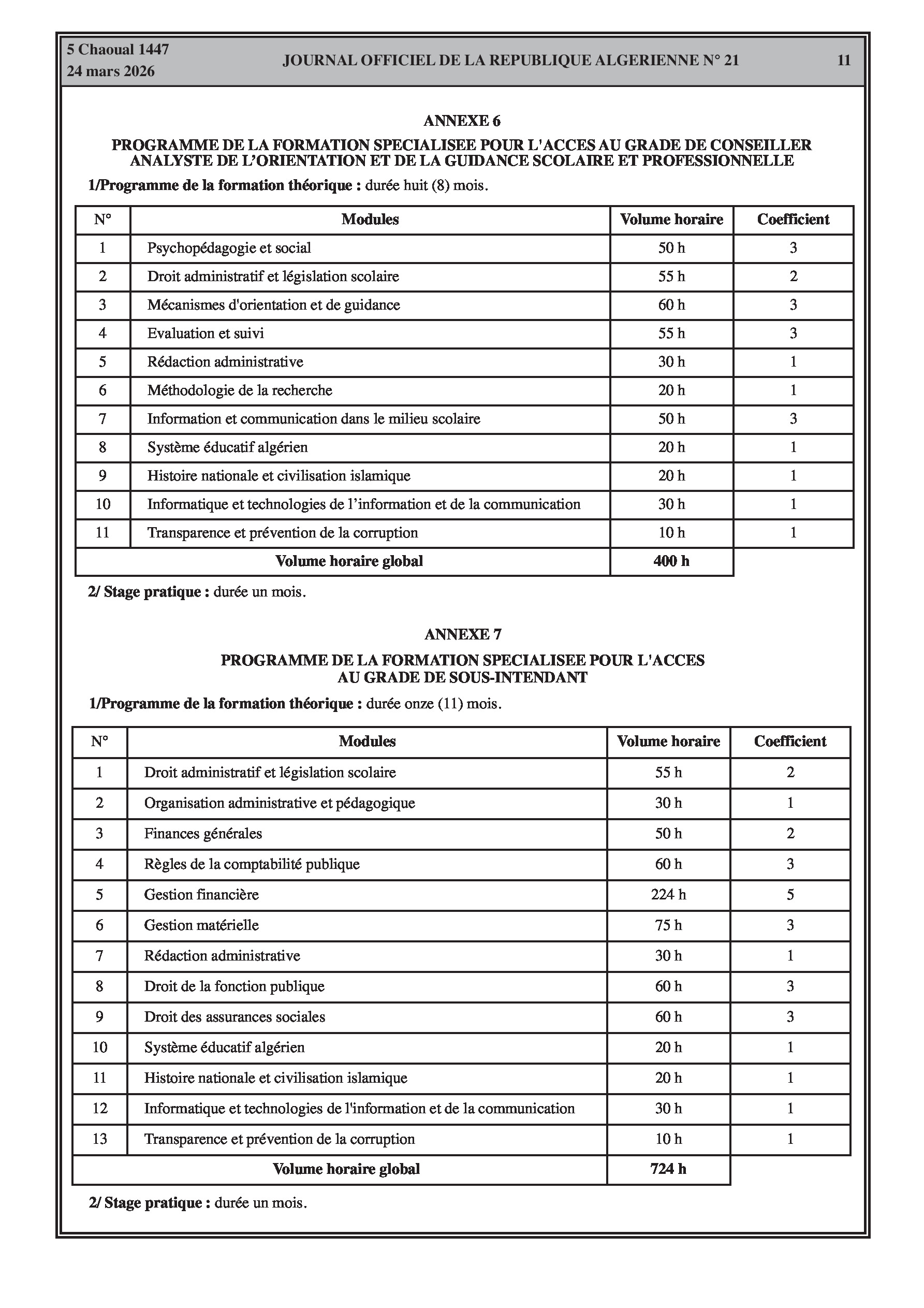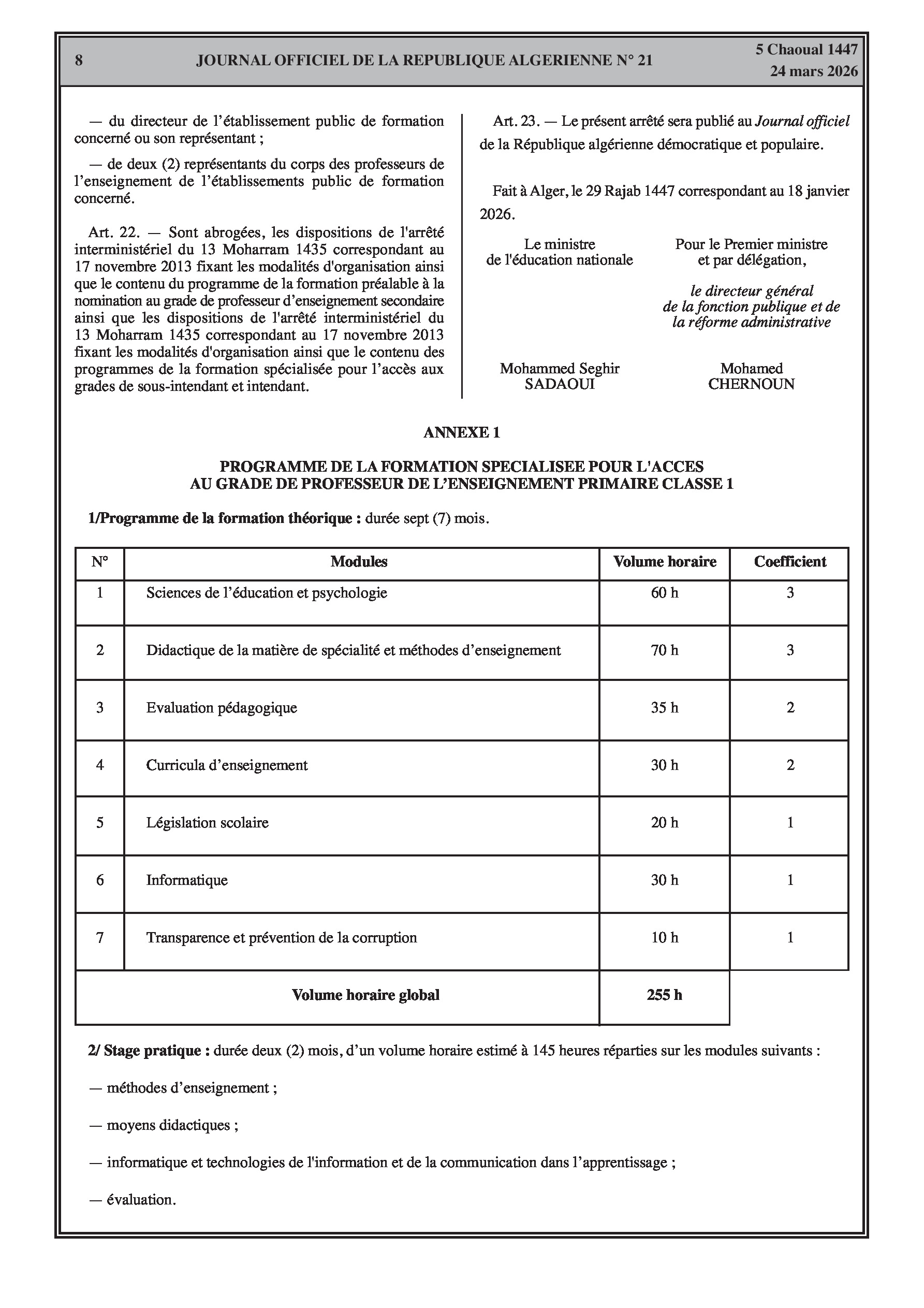Fixation de l'organisation, de la durée et du contenu des formations spécialisées pour l'accès et la promotion aux grades de l'éducation (enseignants, superviseurs, intendants, laborantins). Modification des effectifs et contrats des agents d'entretien.