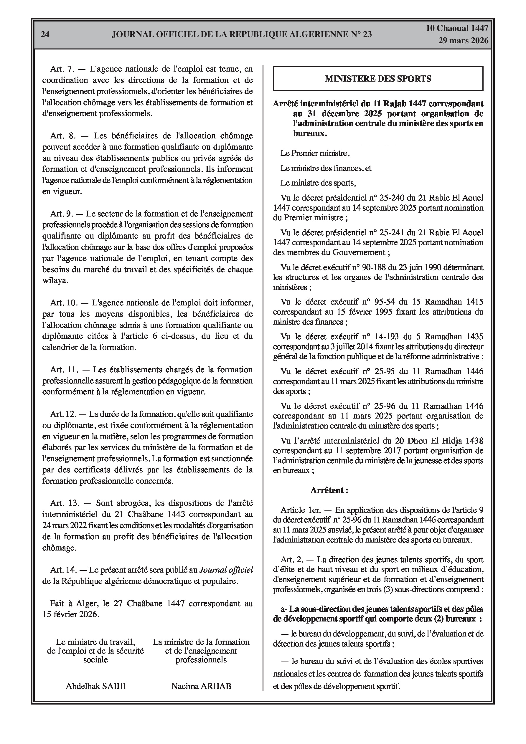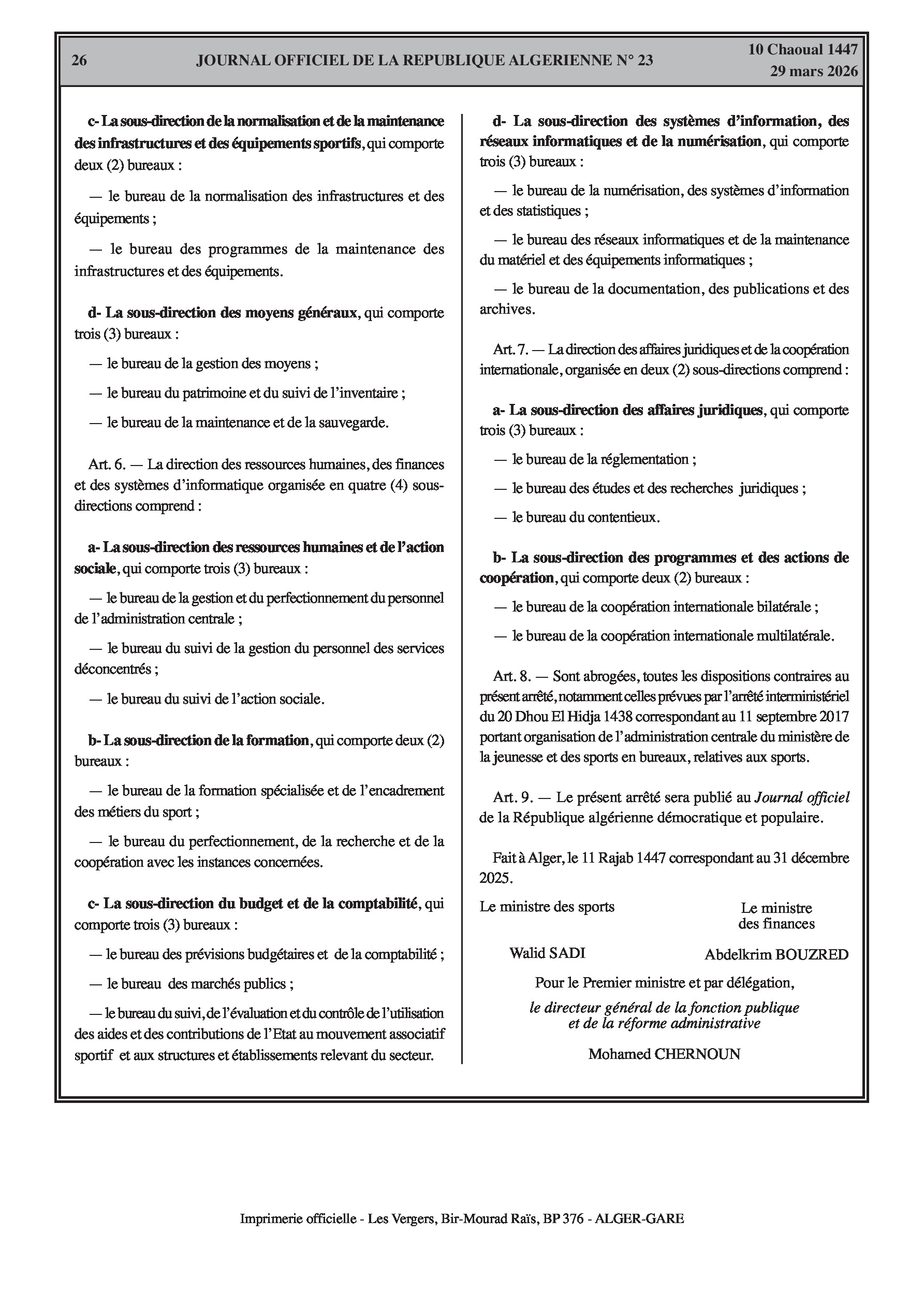 • Nomination de Fateh Boutbig au Conseil de la Nation. • Organisation de l'administration centrale du ministère des sports en nouveaux bureaux. • Fin de fonctions et nominations de cadres au niveau de plusieurs ministères et wilayas.