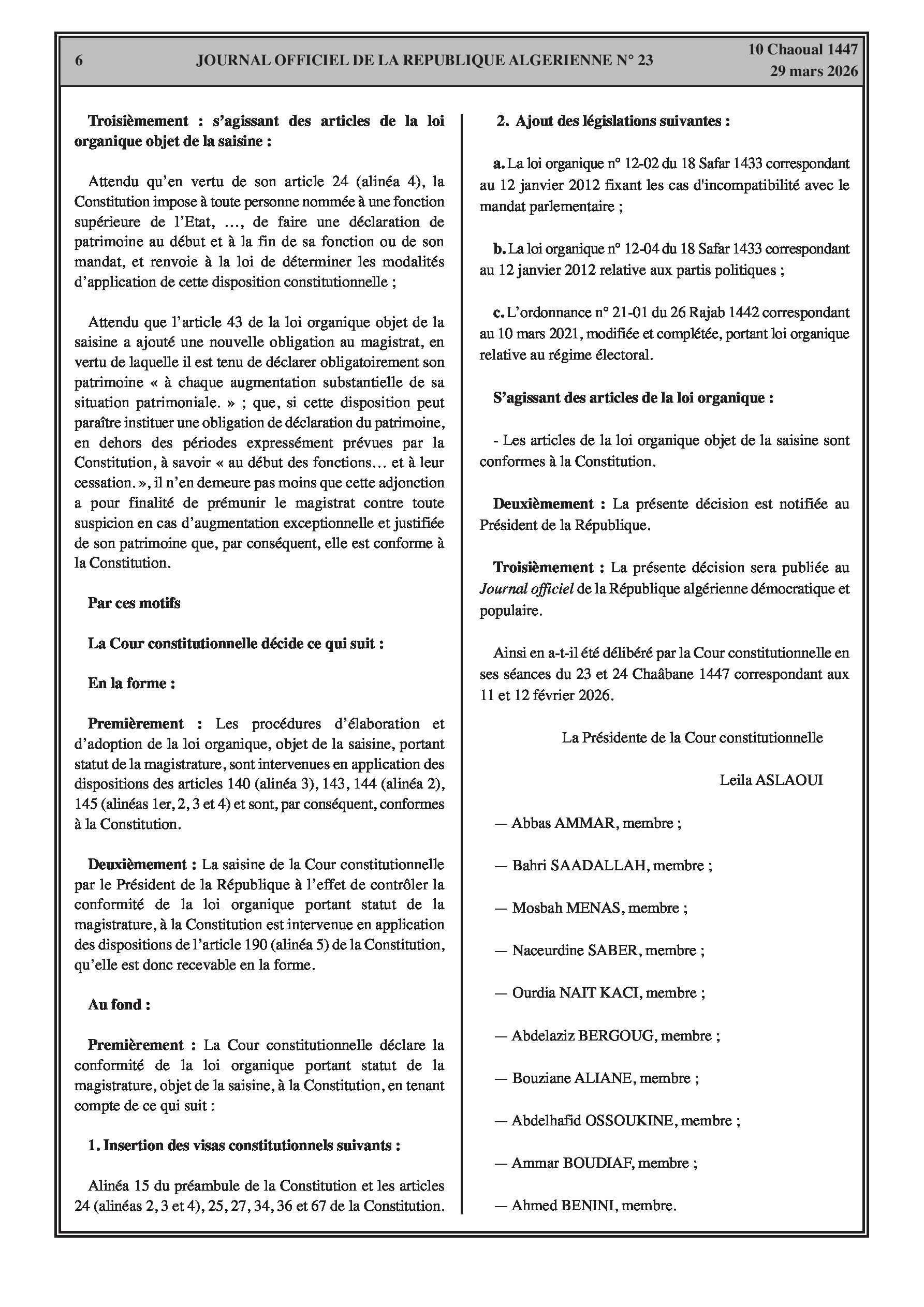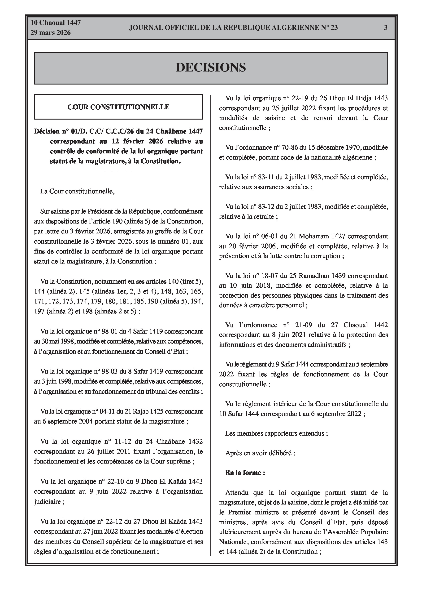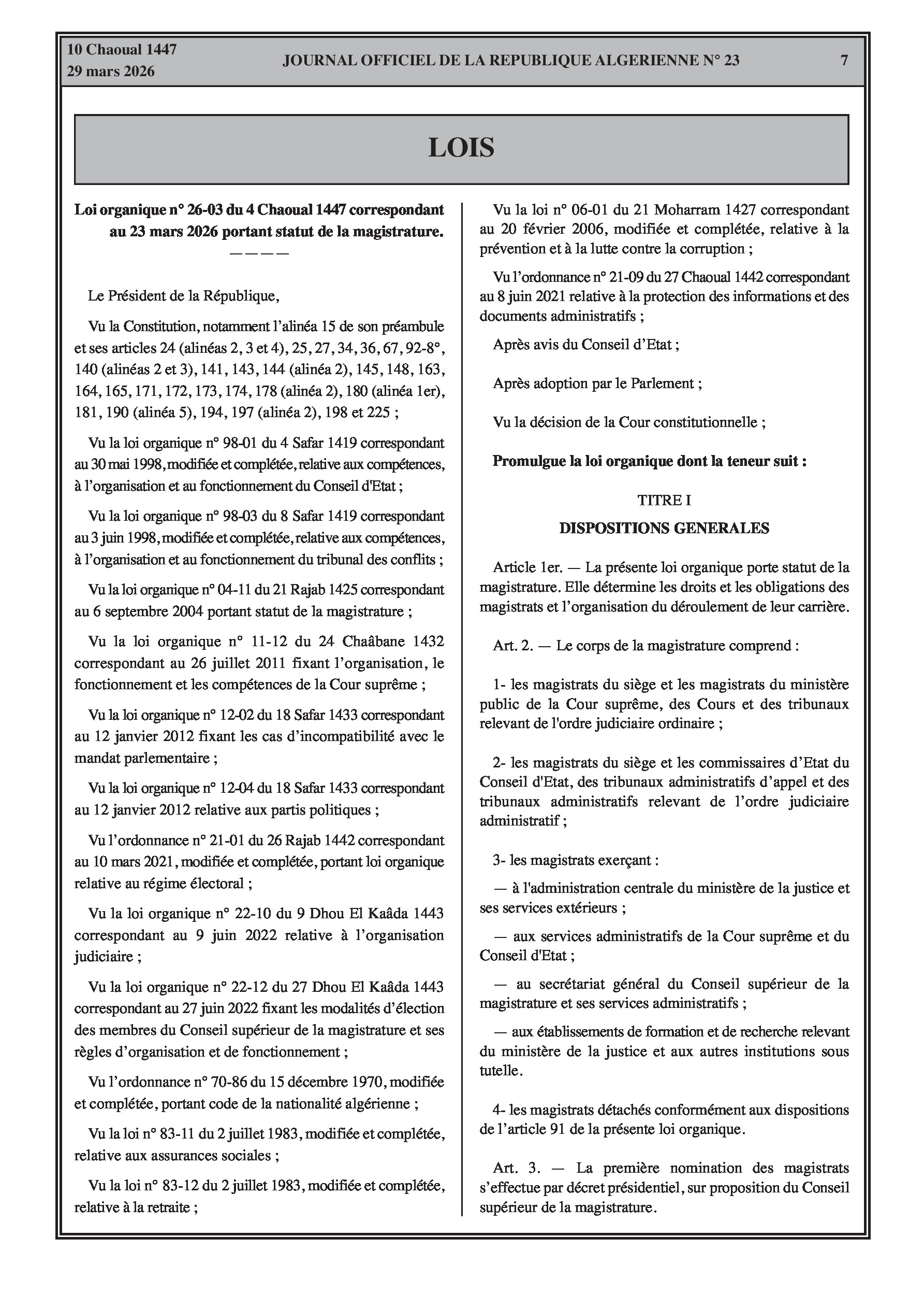 Promulgation de la loi organique portant statut de la magistrature après validation par la Cour Constitutionnelle.