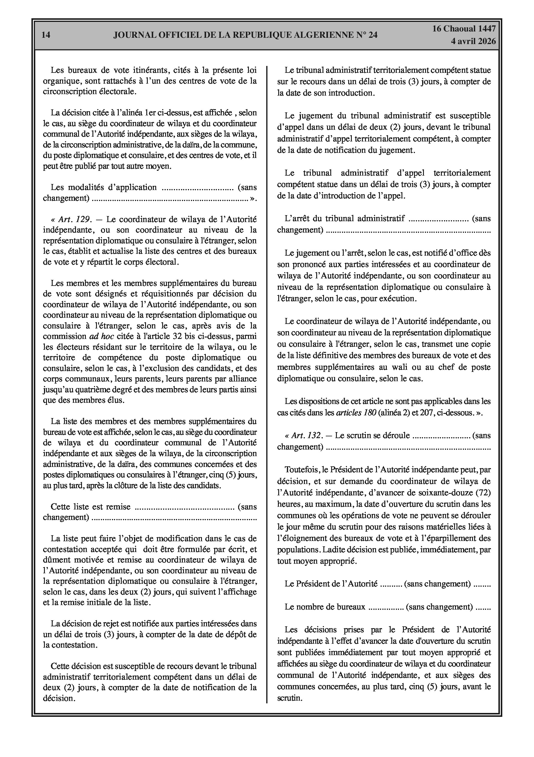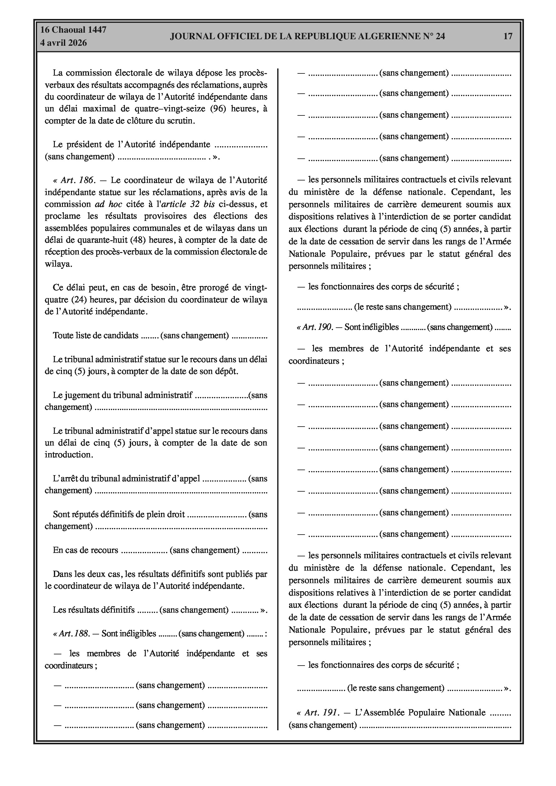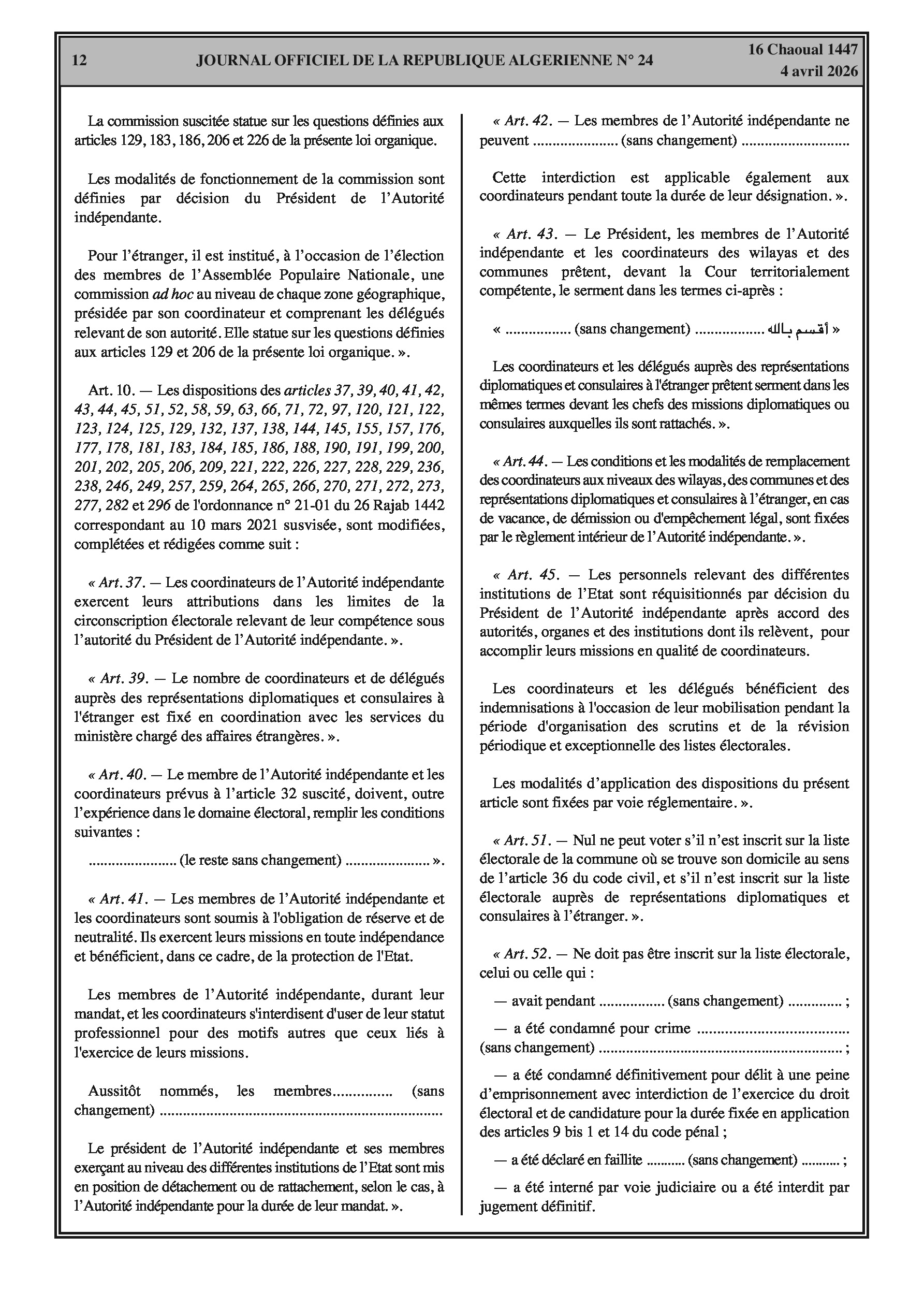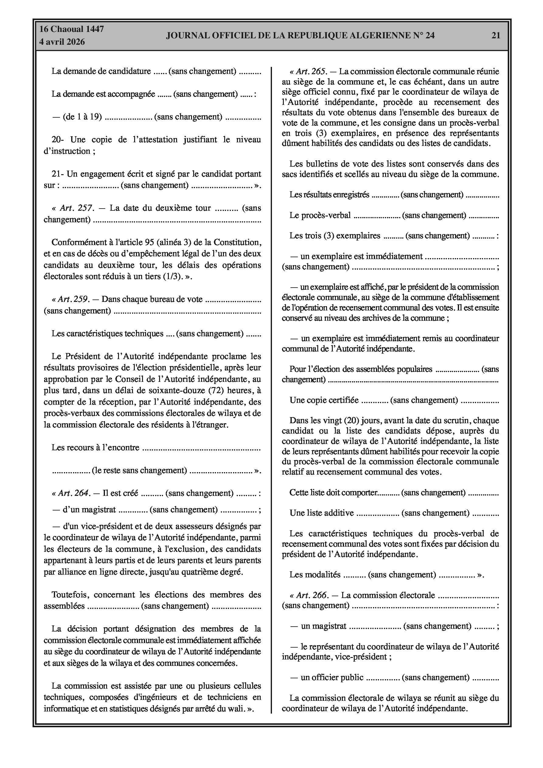 - La Cour constitutionnelle valide la loi organique modifiant le régime électoral. - La loi réorganise l'Autorité Nationale Indépendante des Élections. - Nouvelles conditions de candidature incluant des quotas pour les jeunes, les femmes et les diplômés universitaires. - Le 2 juillet 2026 est fixé pour les élections législatives.