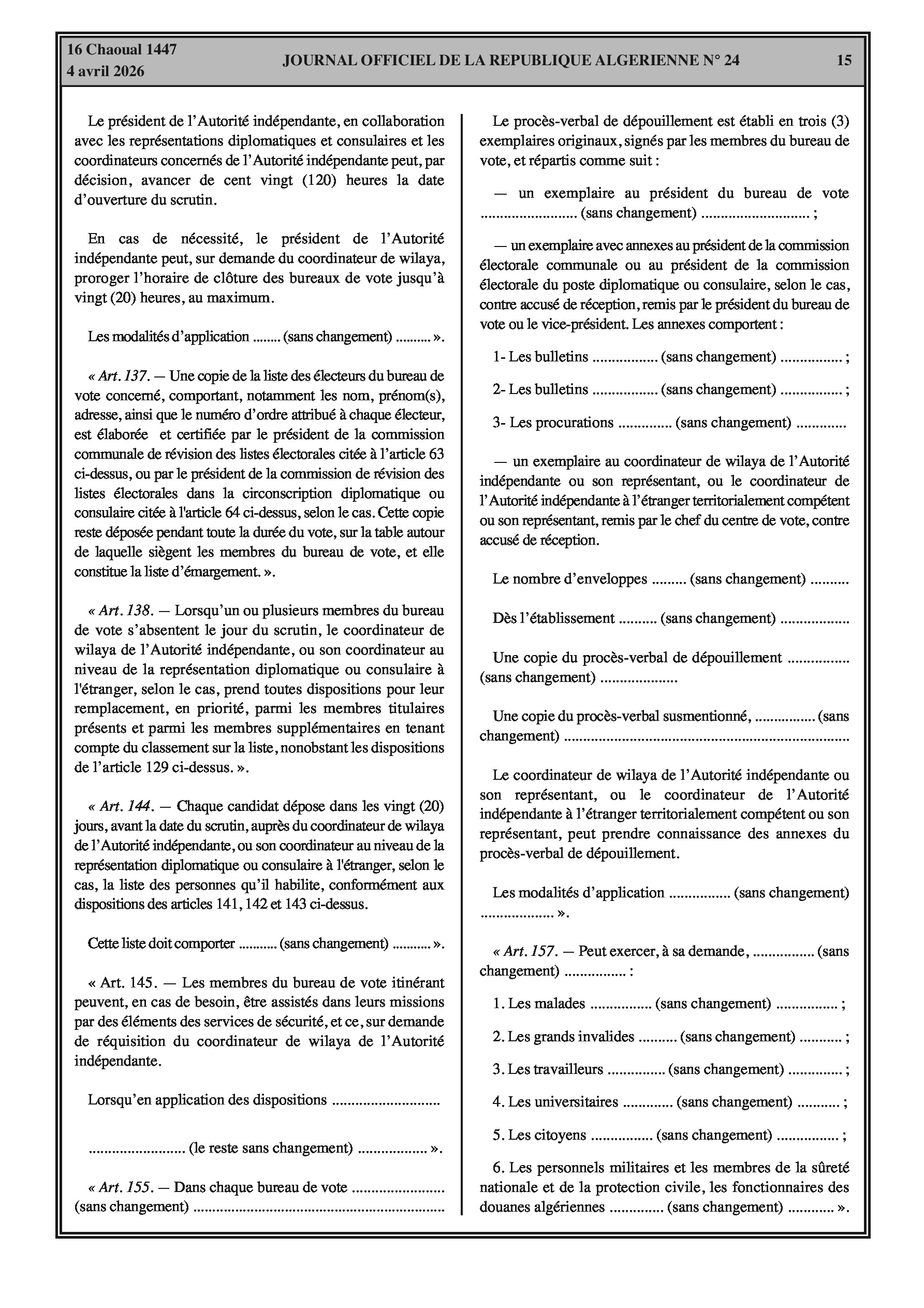 Adoption d'importantes modifications constitutionnelles et organisationnelles de la loi électorale, suivie de la convocation du corps électoral pour l'élection des membres de l'APN.